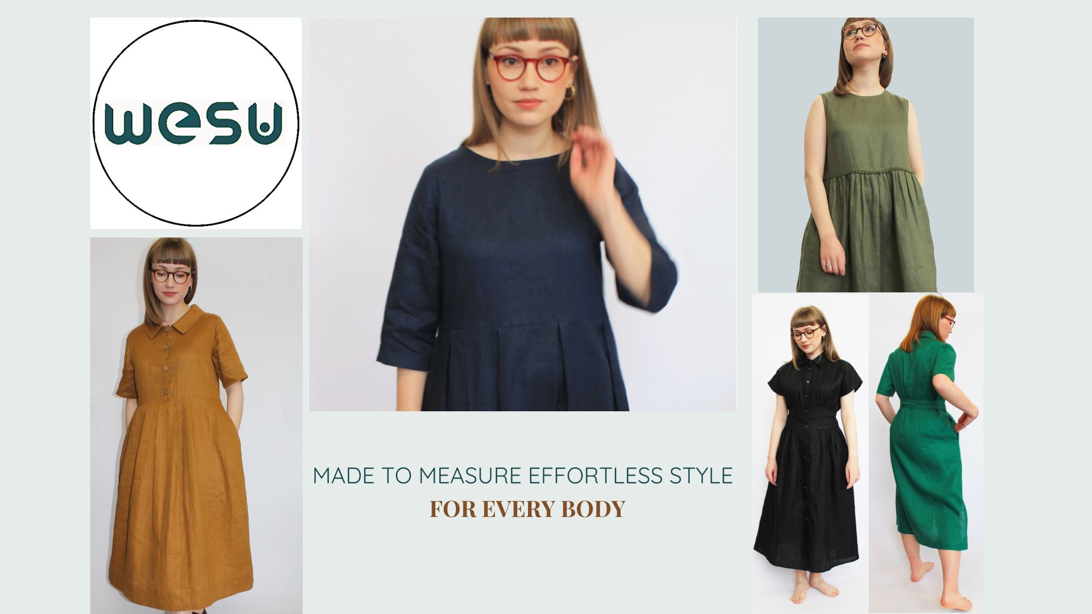 Ready-to -Wear Boat Neck Box Pleat Linen Dress Short Sleeved version